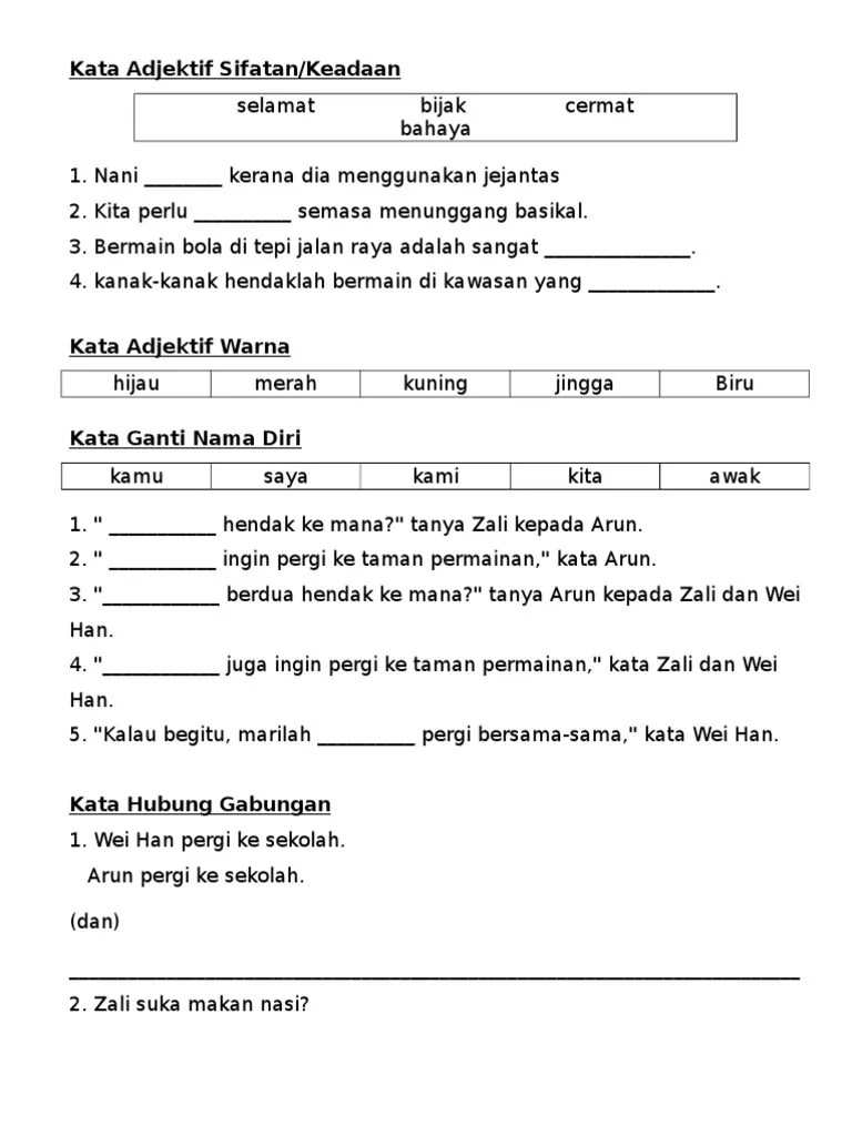 Koleksi soalan peperiksaan, percubaan, ujian, kbat, nota, latihan, modul, jawapan kata adjektif tahun 1. Koleksi soalan peperiksaan, percubaan, ujian, kbat, nota, latihan, modul, jawapan.